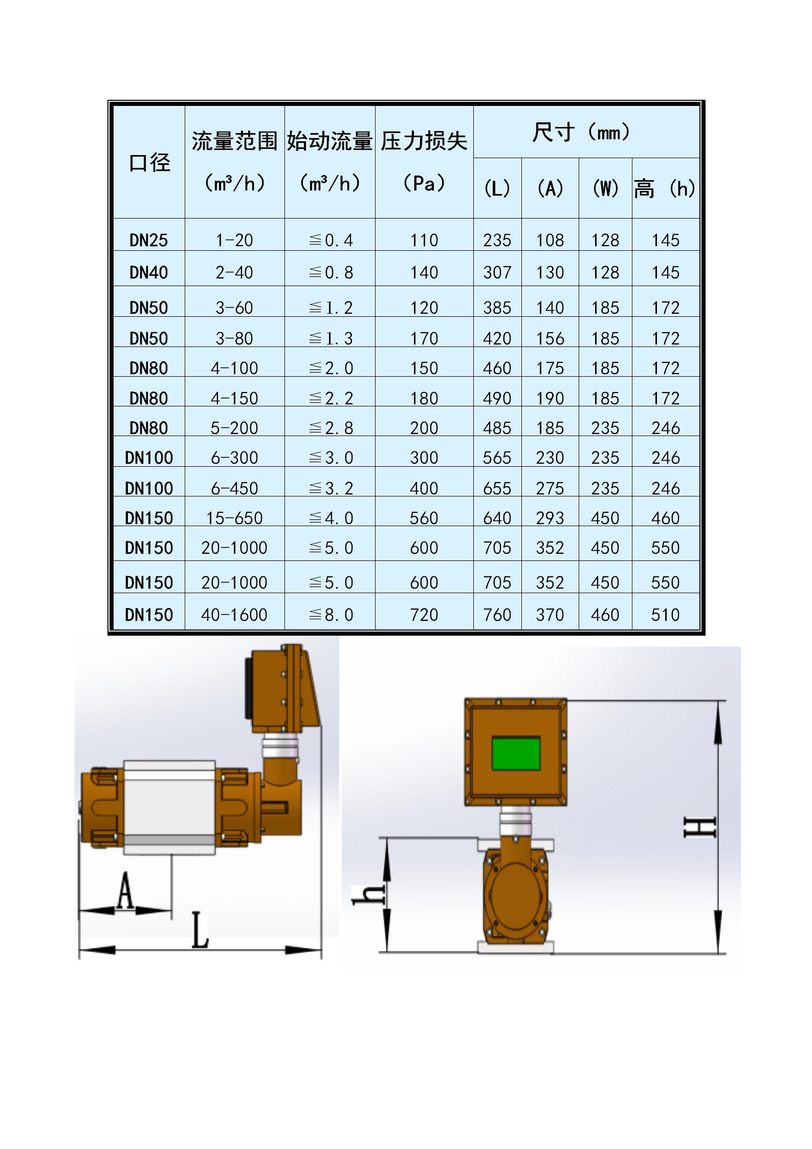 2、始動流量低,測量范圍度很寬;不同規(guī)格流量計的測量范圍度可達40:1~200:1。