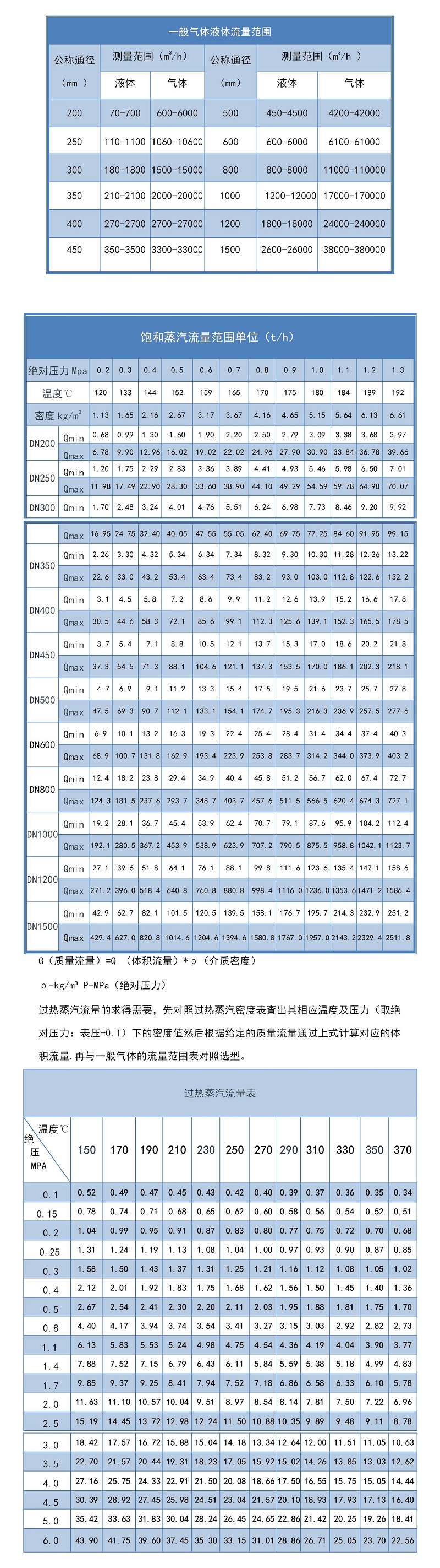 渦街流量計(jì)選型表